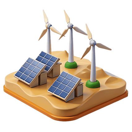Wind Farms: Installed where average wind speeds are consistently high (usually 5–7 m/s or more). Wind turbines are spaced apart to prevent wind shadowing and to maximize energy capture.